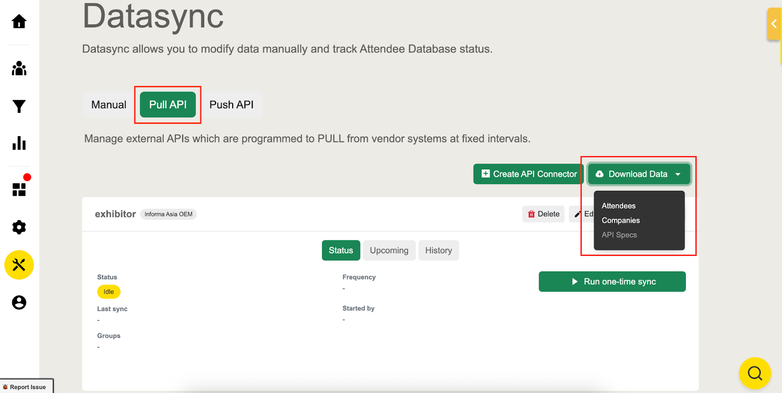 - Retrieve pushed attendee or companies database efficiently with one click.
