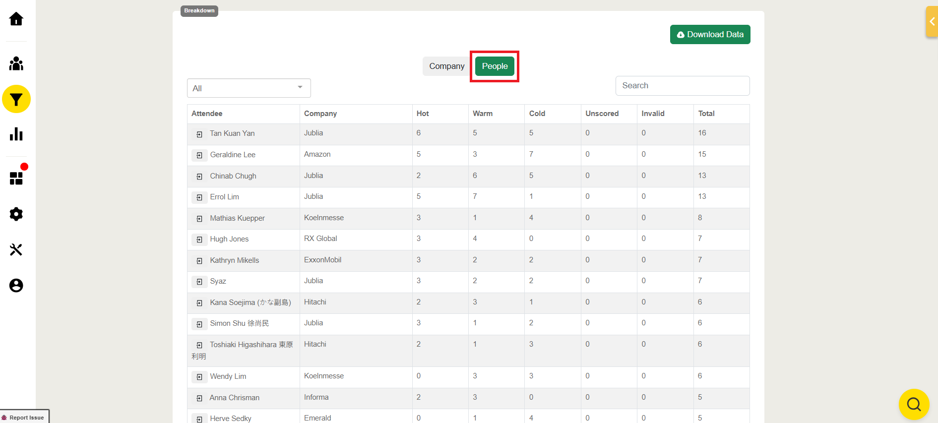 This data focuses on individual attendee interactions, helping you understand how specific attendees are engaging with exhibitors. This information is useful for assessing the effectiveness of exhibitor interactions and understanding attendee preferences.