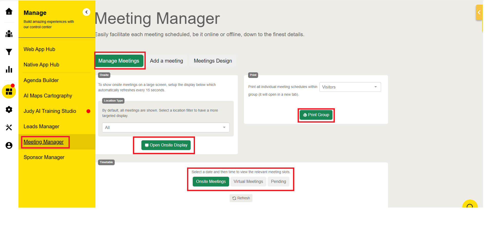 Step 1: Navigate to Manage > Meeting Manager to view all scheduled meetings for your event.