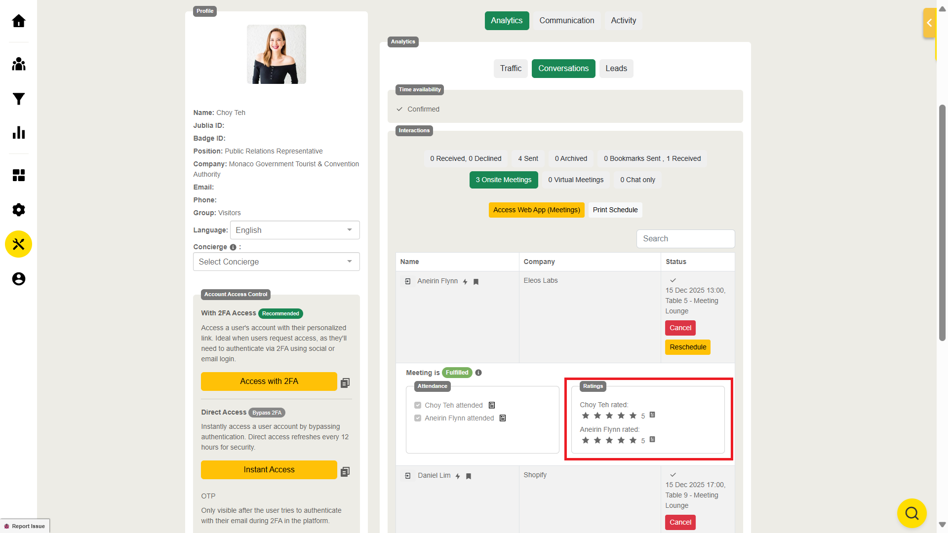 Step 5: Access the Onsite Meetings tab to see ratings and attendance details.
