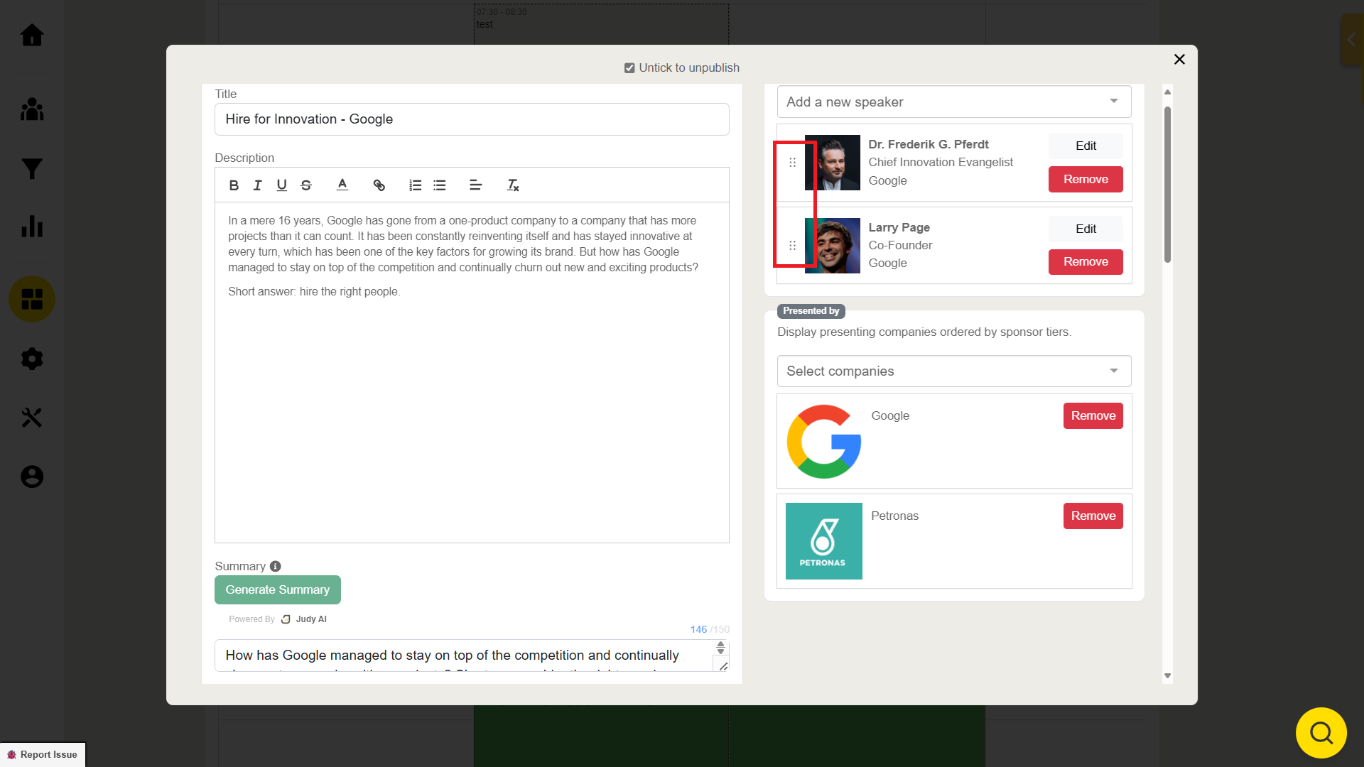 If there are multiple speakers, you can reorder them by clicking and dragging the dotted icon next to their profile picture.